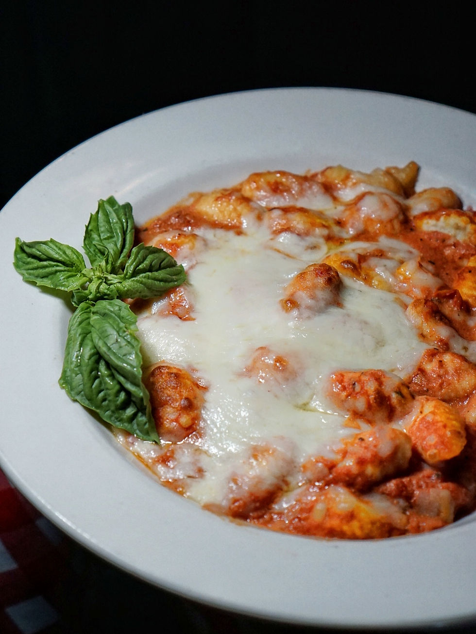Potato dumplings prepared with marinara sauce and ricotta cheese, topped with baked mozzarella. The gnocchi was so light and delicate. Its hard to believe it stood up to such a sturdy marinara. But it did! Great combo!