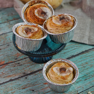 LAMB & ROSEMARY Choice American Ground Lamb, marinated in Australian Shiraz Red Wine with mirepoix (Diced carrots, celery & onion) and selected herbs, including rosemary. Short crust base & buttery croissant pastry top.
